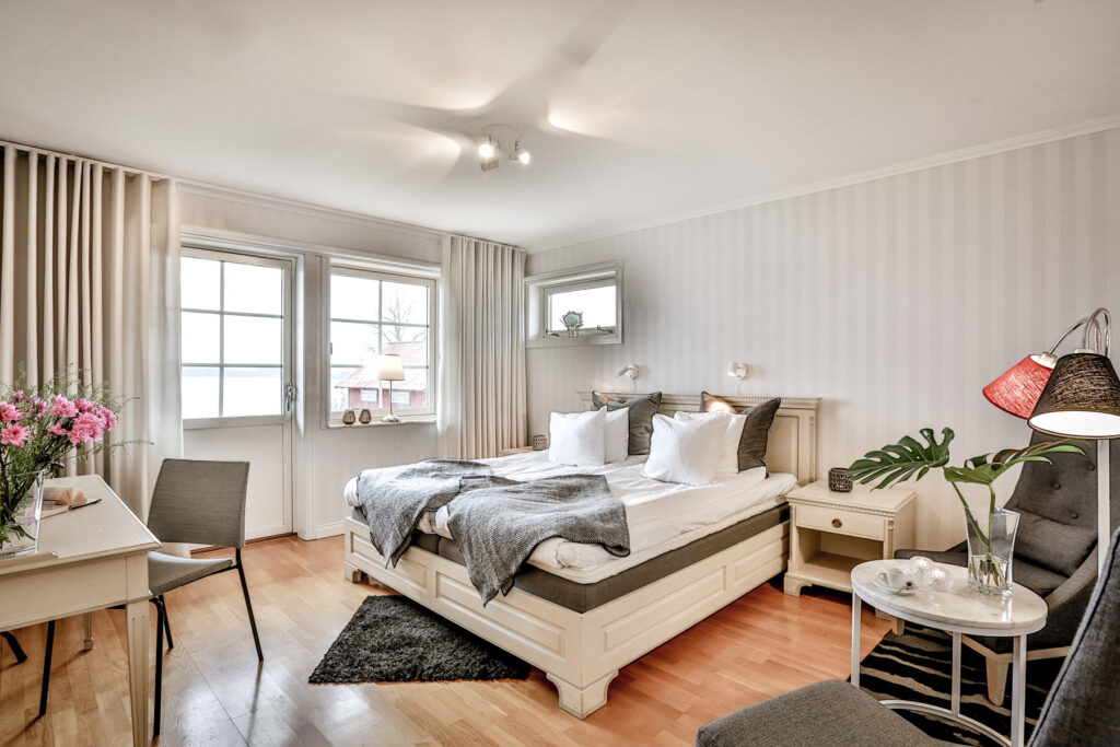 Ljust och öppet med kök, vardagsrum med kakelugn och stor altan mot Mälaren. Den ljusa konferenslokalen rymmer 15 personer (12 i styrelsesittning) och utsikten är magnifik. Här kan ni vara för er själva. Och vara er själva. I Sjövillan finns också tre hotellrum med King size-sängar.
